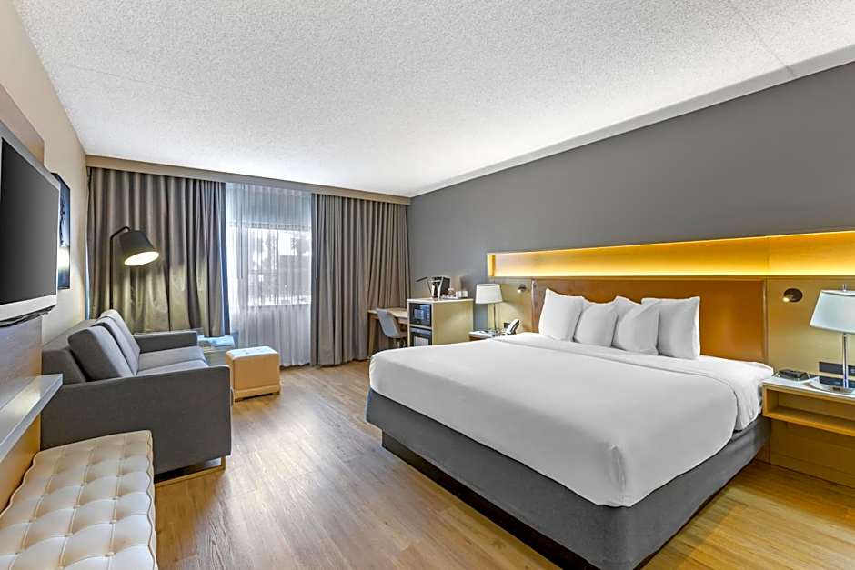 This suite has a tea and coffee maker, a safe deposit box and a TV with cable channels. The unit has 1 bed.